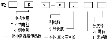 注:對厚度是2mm的,如上例可以省略表示為:WZPD-10×60-3D-1-Pt100